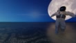 3D-Animation von Astronaut verlassen vom Mond. Konzeptionelle Schlüsselwörter – Exploration und Abenteuer
