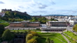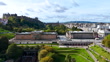 Luftaufnahme der Scottish National Gallery und der Royal Scottish Academy, Luftaufnahme von Edinburgh, Kunstgalerie im Stadtzentrum von Edinburgh, Luftaufnahme der Altstadt von Edinburgh - 4K Stock-Video