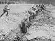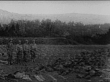 Allied soldiers near group of dead bodies laid out on ground in Arnstadt / LS men dig a long trench in Arnstadt / liberated prisoners in barracks at Bergen-Belsen camp, with nurse and patient in foreground / women in bunk beds in barracks at Bergen-Belsen / group of young prisoners, some in striped uniforms / older male prisoner with whiskers at Buchenwald camp; tilt down to young boy / montage emaciated male prisoners / from Greatest Headlines of the Century series