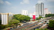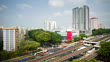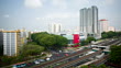 Timelapse photography of Ang Mo Kio New Town Centre, showing HDB public apartments, shopping mall, MRT station and private condominium. Ang Mo Kio New Town is the Seventh Housing and Development Board (HDB) new town, had been developed since 1973. Timelapse taken with tilt shift lens to create miniature effect.