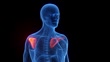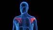 Animation of male anatomy - infraspinatus. plain black background. professional studio lighting. rotation