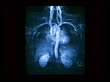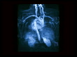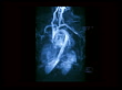 Aortic arch. Coloured rotating magnetic resonance angiography (MRA) scan of the chest. The aortic arch (dark blue, upper centre) carries oxygenated blood from the heart to the rest of the body.. - Stock-Video
