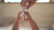 Close up of Baby hands holding a toy from mother , relationship from mother to kid , family , baby , infant , newborn , 4K(UHD)