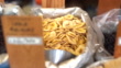 CU SELECTIVE FOCUS Container with banana chips in market / Norwich Market, Norfolk, United Kingdom
