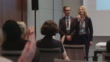Geschäftsfrau hält Rede auf Konferenz im Hotel - 4K Stock-Video