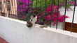 Cat on a fence outdoors, rooftop of a house in Mexico City
