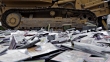 Audio and movie media CDs and DVDs being destroyed, this is the fight against piracy.