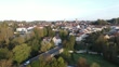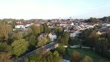Chaumes-en-Brie, Seine-et-Marne, France - October 25, 2024: Aerial footage of Chaumes-en-Brie town at sunrise during autumn.