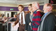 Close shot of older woman crying and fanning herselfFrom L-R Cliff Richard, Hank Marvin, Bruce Welch and Brian Bennett posing for photocall **flash photography**EXTVox pop with fansCUTAWAY of close shot of page of autograph book signed by Richard and the Shadows in 1961 in HarrowClose shot of t-shirts reading 'Cliff Richard and the Shadows Final Reunion Tour 2009' worn by two women fansClose shot of another tour shirtQueue of fans moving forward to HMV in-store signing