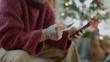 Nahaufnahme von Asiaten, die die besten Preise genießenKaufen Sie online mit einem Smartphone und einer Kreditkarte ein, um Weihnachtsgeschenke über das Internet zu kaufen. - 4K Stock-Video