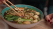 Nahaufnahme der Ramen-Bowl mit Tofu und Gemüse - 4K Stock-Video