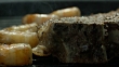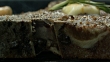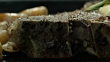 Nahaufnahme von Garnelen und ein erfahrener Rindersteak Kochen auf ein Barbecue-Grill - 4K Stock-Video
