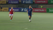 International women's football match featuring a counter attack surging forward with the star #10 center midfielder as the focus sprinting downfield. An artful no-look pass is made to the striker whose shot attempt is blocked by the goalkeeper with a kick save