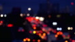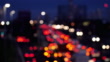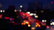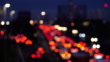 Defocussed traffic moving with tail lights glowing as they travel east on the towards the Blackwall Tunnel. Viewed from a bridge above the A102, the road connecting the A2 and the tunnel, shot in the early rush hour on a clear in January morning in SE London, England. Realtime. Lockdown. Version 1.