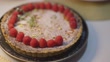 Dessert Topping asiatische chinesische mittel erwachsene Frau Hand arrangieren und dekorieren Zitronenkäse Tarte mit Himbeere auf der Oberseite - 4K Stock-Video