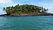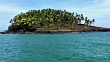 Teufelsinsel vom Schiff gesehen. Ruinen der Strafkolonie an der Küste - HD Stock-Video
