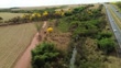 Drone Aerial View of Blooming Yellow Ipe Trees Among Other Trees Along Anhanguera Highway, Interior of São Paulo State, Brazil