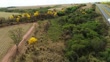 Drone Aerial View of Blooming Yellow Ipe Trees on Anhanguera Highway, São Paulo State, Brazil - HD Stock-Video