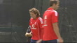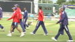 England training; ENGLAND: Durham: The Riverside:EXTVarious of England cricketers doing training exercisesPeter Moores (England coach)James Anderson runningRyan Sidebottom bowlingKevin Pietersen practicing in netsVarious of Stuart Broad bowling in netsPaul Collingwood practicing in nets