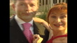 CLEAN: Exterior shots of Stifyn Parri and Sian Lloyd arriving and speaking to the camera at the Final Fantasy Premiere, in aid of the Prince's Trust Cymru on 23rd July 2001 in Cardiff, Wales, United Kingdom