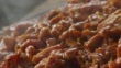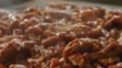 Extreme close up Camera moves over a steaming skillet of barbecue beef. - 4K Stock-Video