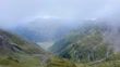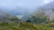 Fast moving clouds at 2000 meters, alpine landscape with cloudy sky