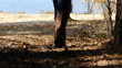 Füße einer Frau in Nubukstiefeln beim Wandern im Herbst-Naturpark - 4K Stock-Video