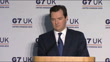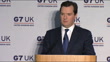 G7 finance ministers agree on need to tackle tax evasion and avoidance; George Osborne MP (Chancellor) at press conferenceReporter asking question SOTGeorge Osborne MP (Chancellor) press conference SOT- What our Japanese friends said to us is that of all the initiatives they are taking, amongst the most important are the structural changes to the Japanese economy / yes of course they are taking fiscal and monetary action but it's also those structural reforms that are incredibly important / we need to take important structural reforms EXTG7 Finance Ministers and Central Bank Governors posing for family photo (group photocall) - includes Jim Yong Kim (President, World Bank), Jeroen Dijsselbloem (Netherlands Finance Minister), Jens Weidmann (President, Deutsche Bundesbank), Mark Carney (Outgoing governor of the Bank of Canada), Mario Draghi (President, European Central Bank (ECB)), Haruhiko Kuroda (Governor, Bank of Japan), Olli Rehn (Economic and Monetary Affairs Commissioner, European Union (EU)), Pierre Moscovici (French Finance Minister), Salvatore Rossi (Director General, Bank of Italy), Fabrizio Saccomanni (Italian Finance Minister), Christine Lagarde (Managing Director, IMF), Jack Lew (US Treasury Secretary), George Osborne, Sir Mervyn King (Bank of England Governor), Jim Flaherty (Canada's Finance Minister), Wolfgang Schaeuble (German Finance Minister), Taro Aso (Deputy Prime Minister of Japan / Finance Minister of Japan), Janet Yellen (Vice chairman, US Federal Reserve)