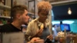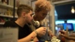 Freunde sprechen und erhalten Kaffee im Café - 4K Stock-Video