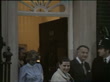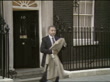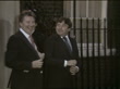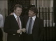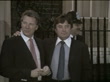 General Election; ENGLAND: London: Westminster: Downing Street:EXTMS Nigel Hawthorne (Sir Humphrey in 'Yes Minister') leaves Number 10 and over towards pressMS Paul Eddington (Jim Hacker in 'Yes Minister') out of No 10 with othersMS Max Bygraves (comedian) and Jimmy Tarbuck (comedian) outside No 10 ZOOM IN as JIMMY TARBUCK answers question from press SOF:"June 9th -- one conclusion"CAS ex ENG(Brown) 19secsTX'D 9.5.83/NATArchive Tape & Cassette 21512 46.14 to 46.40