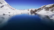 Ein sanfter Bogen aus verschneiter Küste trifft auf die spiegelglatte Seeoberfläche bei Tilicho. - 4K Stock-Video