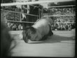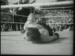 B/W 1951 Gerhard Hecht writhing around in pain on floor of boxing ring / Berlin / newsreel