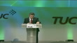 Gordon Brown addresses TUC; East Sussex: Brighton:EXT*** BEWARE FLASH PHOTOGRAPHY ***Gordon Brown MP (Prime Minister) welcomed and kissed on cheek by TUC delegate(?)as poses for photocallENDSINTGordon Brown MP (Prime Minister) speech SOT- Pay discipline is essential to prevent inflation, to maintain growth and to create more jobs and so that we never return to the Conservative pattern of boom and bustBrown addressing TUC Conference (not heard)Brown seen on camera monitorGRAPHICISED SEQ Brown speech SOT - Today I want to show you how we can respond to globalisation by creating more jobs for British men and womenBrown speaking (not heard)