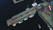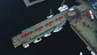 Aerial time lapse of the Halifax waterfront with a busker performing for a crowd.