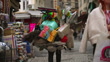 SLO MO Handheld-Aufnahme eines Mannes, der Haushaltsgeräte verkauft, während er auf der Straße in Istanbul, Türkei, spaziert - 4K Stock-Video