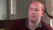 Matt Speight ('donated blood recipient) set-up chatting with his father Rob in garden/