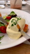 Cutting poached eggs from camera point of view as for social media. Shot using iPhone 12 Pro Max.