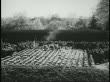 B/W 1945 high angle wide shot soldiers with rifles fire salute F.D. Roosevelt's funeral / Hyde Park, NY / newsreel