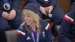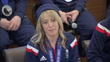CLEAN: Interior shots of Jenny Jones speaking at Winter Olympics Team GB presser with medallists Mike Hay, Jenny Jones, Lizzy Yarnold, Eve Muirhead, Anna Sloan, David Murdoch, Scott Andrews and Jon Eley on 25 February 2014 in London, United Kingdom