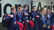 CLEAN: Interior shots of Winter Olympics Team GB including Lizzy Yarnold, Eve Muirhead, Anna Sloan, David Murdoch and Mike Hay arrive back in London at Heathrow on 24 February 2014 in London, United Kingdom