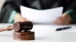 Richter liest Entscheidung. Es gibt einen Hammer und einen Hammer vorne.