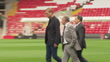 Jurgen Klopp (new Liverpool Manager), Ian Ayre (Managing Director, Liverpool FC) and Tom Werner (Chairman, Liverpool FC) talking (not heard) / posing for photos