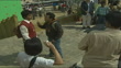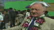 Ken Livingstone (London Mayor) operates clapperboard on Bollywood (Aladdin) film set and scene being filmed