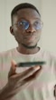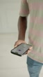 Man using voice input on mobile device to find cleaning advice, representing fast access to online knowledge