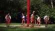 MEXICO CITY, MEXICO - JULY 17: Los Voladores De Papantla (Flying Men Of Papantla) walk to the rhythm of the music during a ritual ceremony at the Chapultepec Forest on July 17, 2022 in Mexico City, Mexico. This ritual ceremony of the Totonac, originally from the state of Veracruz, aims to express respect for nature and the universe. (Footage by Vincent Isore/IP3/Getty Images)