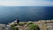 WS Male Traveler at the end of the Camino in Finisterre - HD Stock-Video