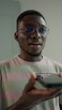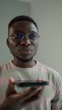 Young man searching the internet on his phone with a serious expression, concept of digital solutions and everyday challenges
