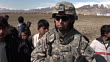 March 5, 2009 CU U.S. Army soldier being interviewed by a reporter about teaching village children the English language / Bagram, Afghanistan