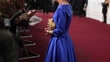 LONDON, ENGLAND - DECEMBER 5: Marcia Warren holds a crown purse whilst talking to the media at "The Crown" Finale Celebration at The Royal Festival Hall on December 5, 2023 in London, England. (Footage by Jordan Sellers/Getty Images)