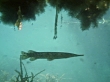 WWWA: BENEATH SOUTHERN WATERS: UNDERWATER: WS Two Longnose Gar (Garfish) swimming near stalks of aquatic vegetation & under.